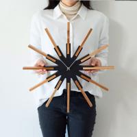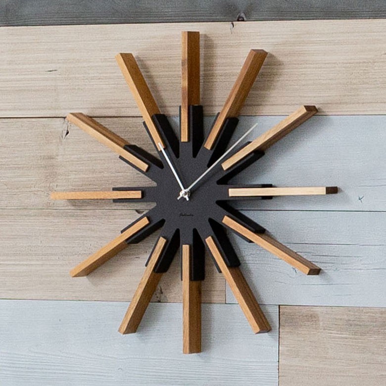 ナチュラルなウッドとブラックがかっこいい壁掛け時計。