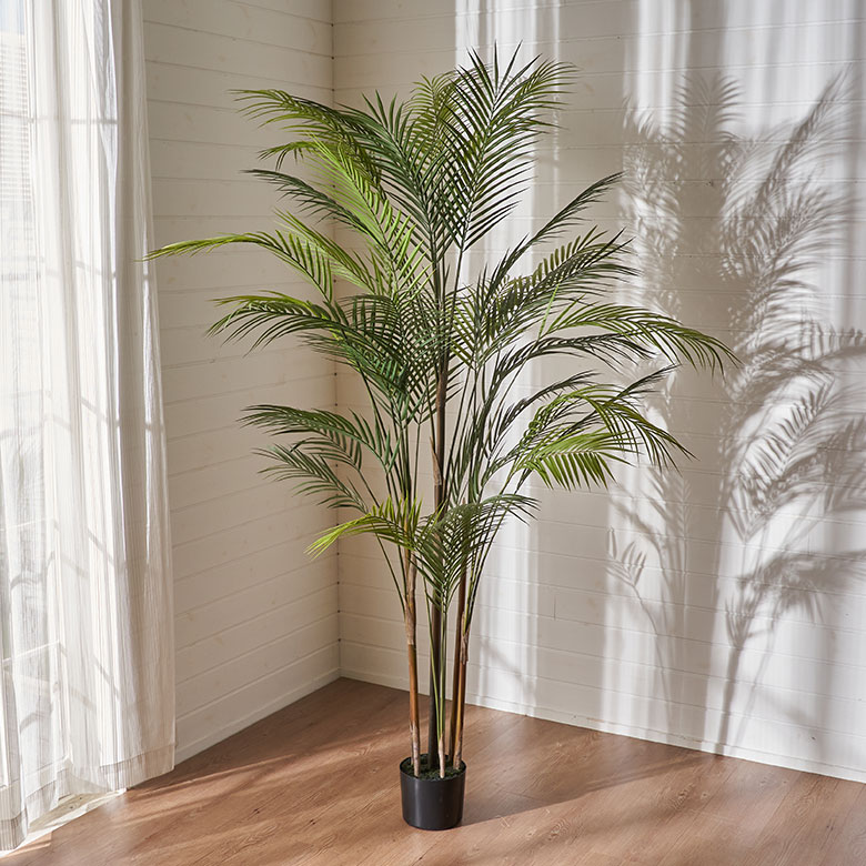 ジャングルのような地域に自生している力強いヤシの木を表現しており、深い緑の葉が茂る姿を自宅で手軽に楽しめるフェイクグリーンです。