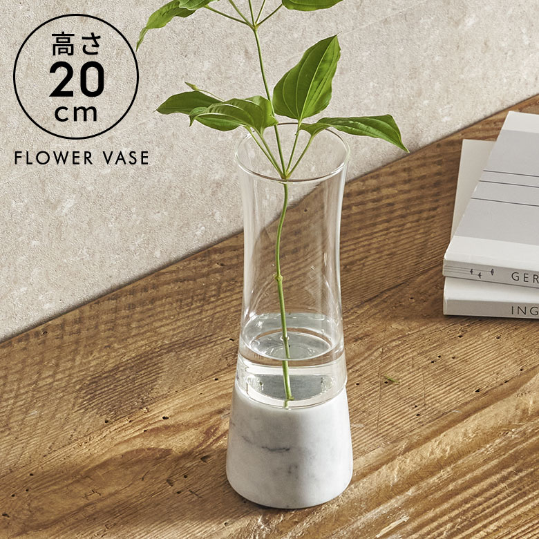 大理石とガラスを組み合わせたインテリア性の高いフラワーベース。
