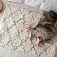 デザインだけでなく、長めの毛足がふんわり気持ち良く、ラグの上でごろんと寝転びたくなる心地良さも魅力的。