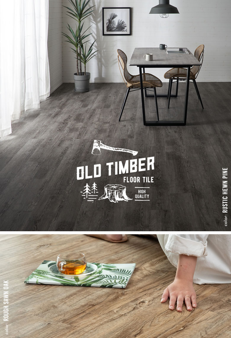 ▲ 手軽に床をリフォーム!当店のフロアタイル一覧へ置くだけフロアタイル