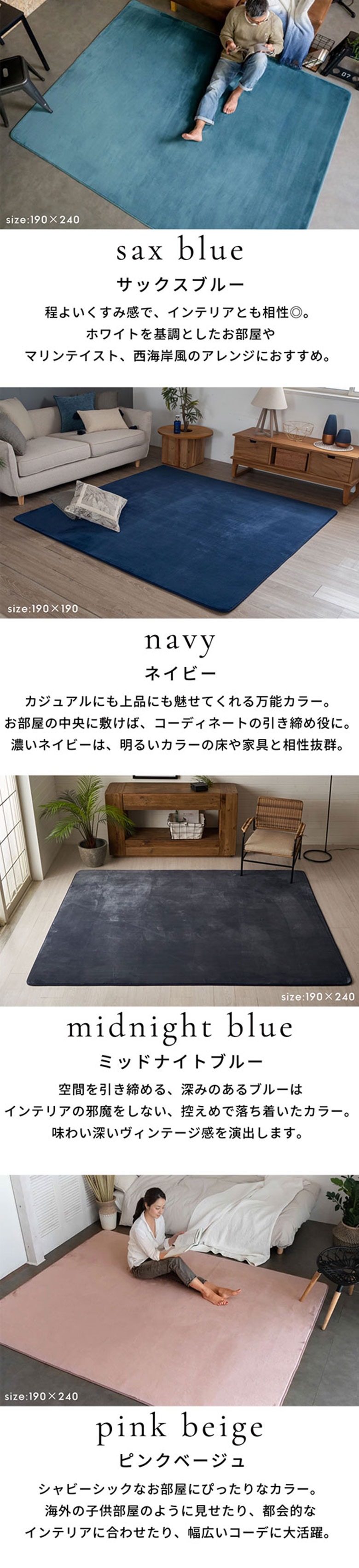 重いラグは何かと大変!こちらのラグは軽量設計なので、女性ひとりでも持ち運びできるので、お洗濯のときや干すとき配置換えも楽ちん。