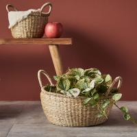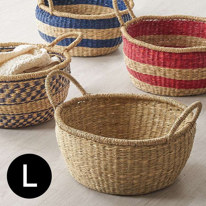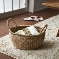 シーグラス(天然水草)をハンドメイドで丁寧に編みこんだ、ぬくもりある天然素材の自然派バスケット。どんなシーンでも活躍する、便利でおしゃれな万能アイテムです。お片付けしたいところに、ちょっと空いたスペースに、コロンとどうぞ。