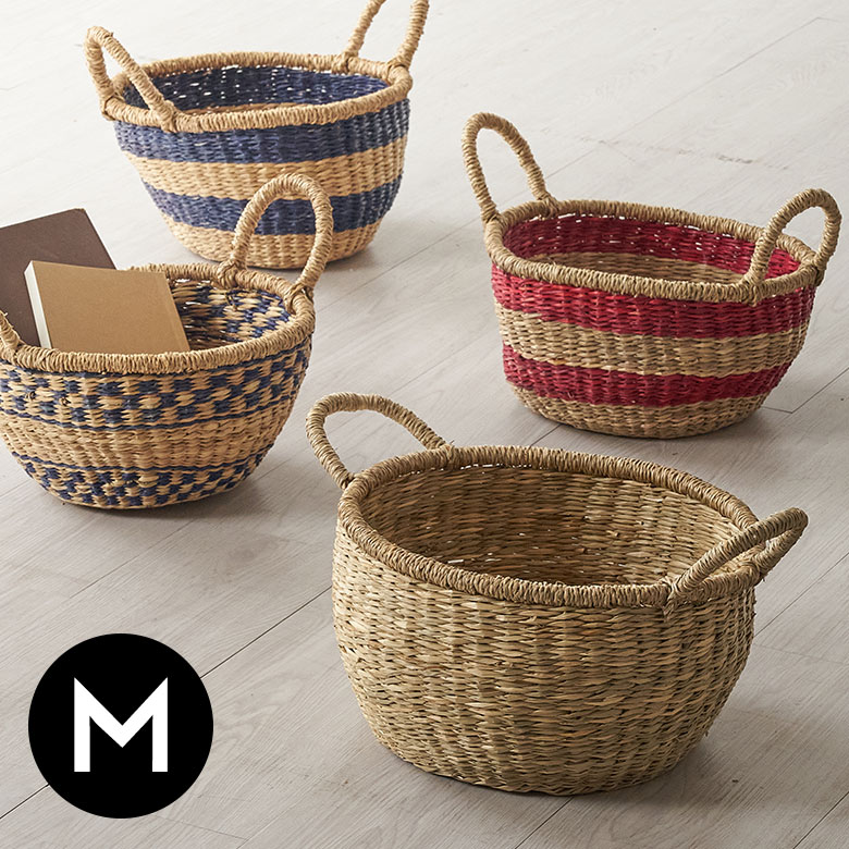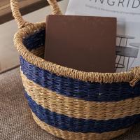 シーグラス(天然水草)をハンドメイドで丁寧に編みこんだ、ぬくもりある天然素材の自然派バスケット。どんなシーンでも活躍する、便利でおしゃれな万能アイテムです。お片付けしたいところに、ちょっと空いたスペースに、コロンとどうぞ。