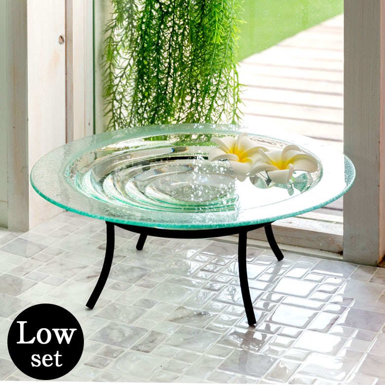 ガラスのアジアン水盤Lサイズとロータイプアイアンスタンドのセット ガラスの水盆 ガラスのボウル アジアン雑貨 アジアンインテリア アジア雑貨 set-10040