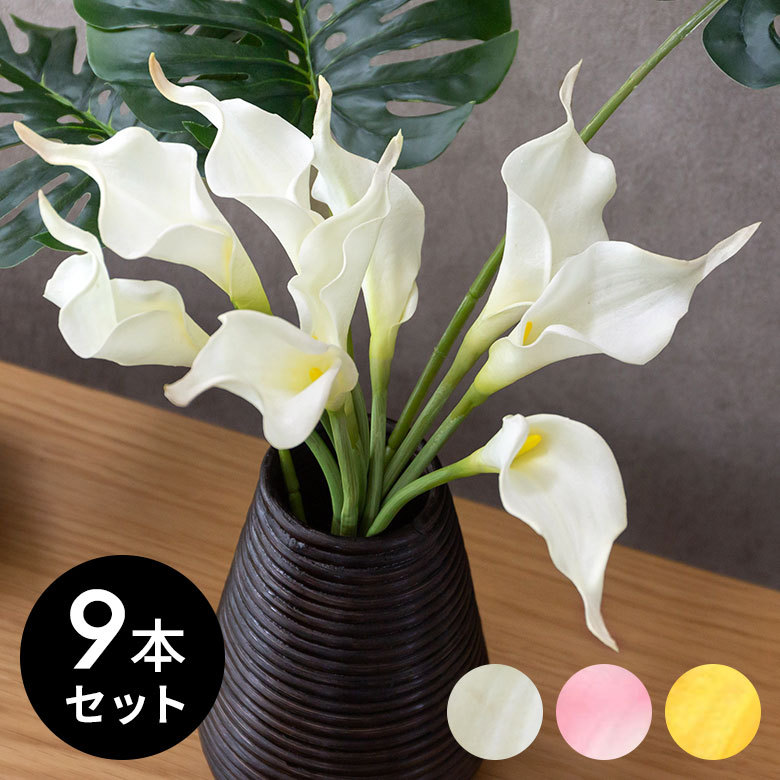 9本セット 造花 カラーリリー ショート 観葉植物 フェイクグリーン 枝付き リゾート アジアン雑貨 花飾り 3色展開 set-6164