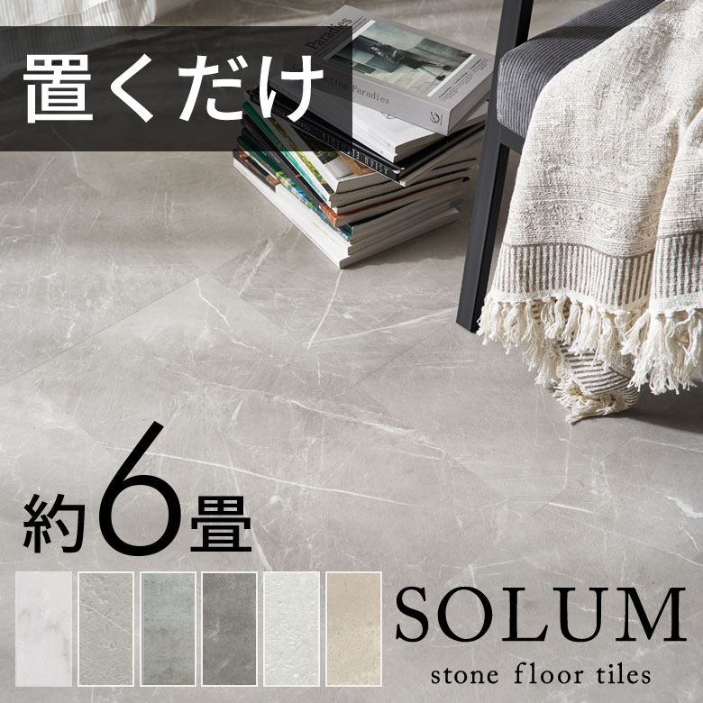 自然から生み出された、ストーンの豊かな表情を再現した、接着材不要の敷くだけフロアタイル「SOLUM ソルム」。