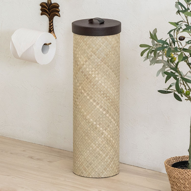 パンダン トイレットペーパー ケース ラウンド型 収納 ボックス ホルダー アジアン モダン バリ t-1170