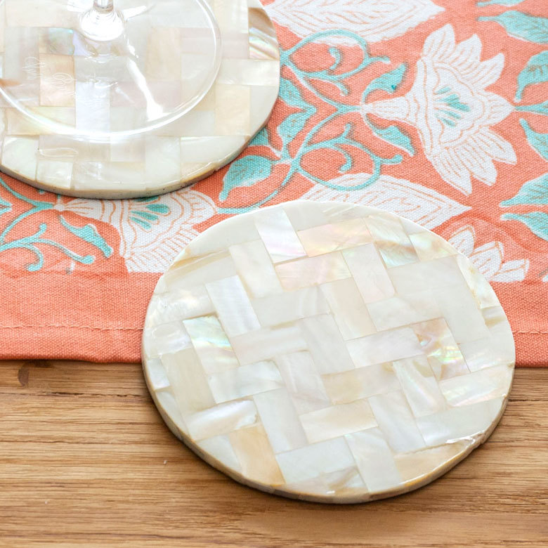 いつもの食卓もワンランク上のテーブルに生まれ変わりそうなパールシェルのコースター。