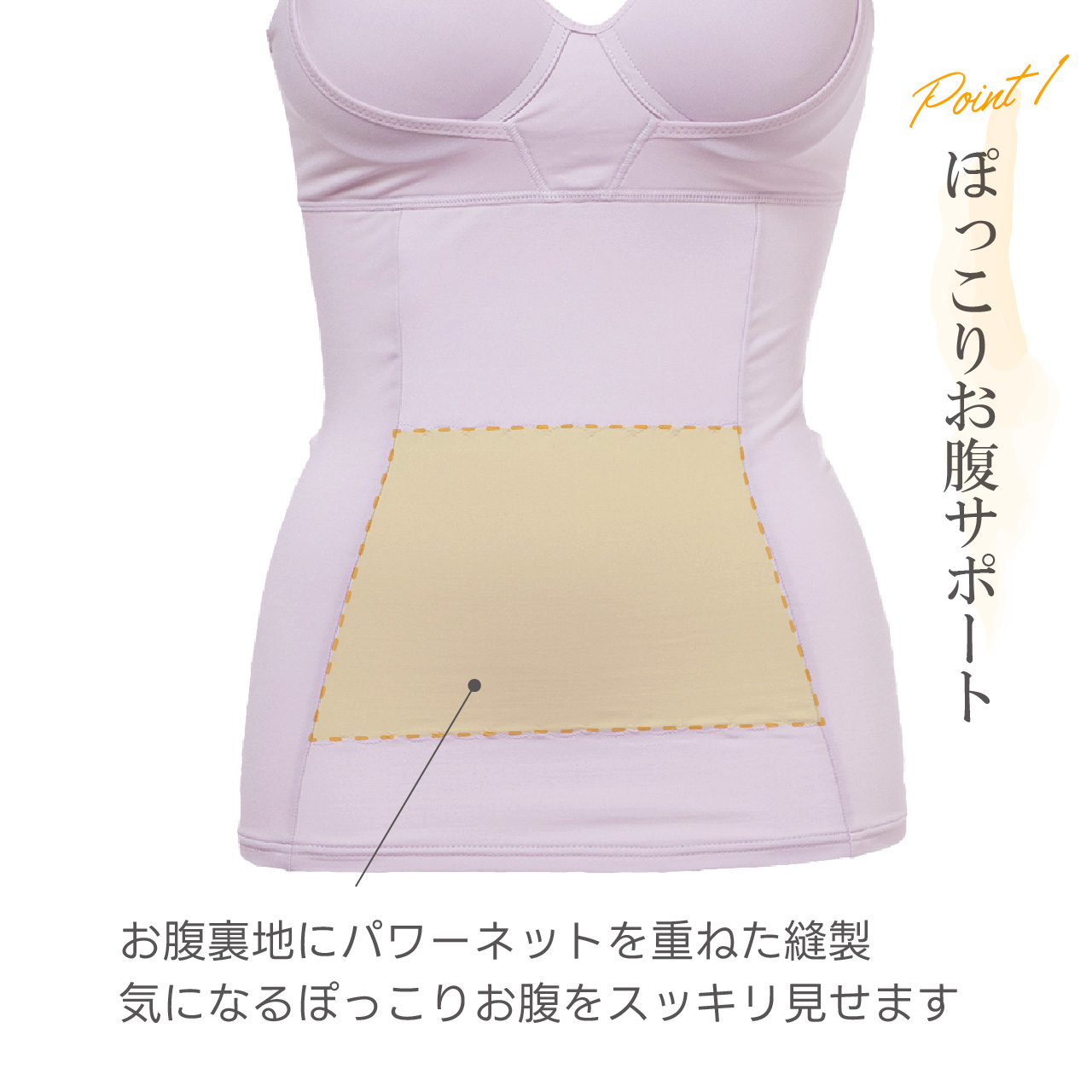 お腹部分にパワーネットを重ねてぽっこりお腹を軽減。