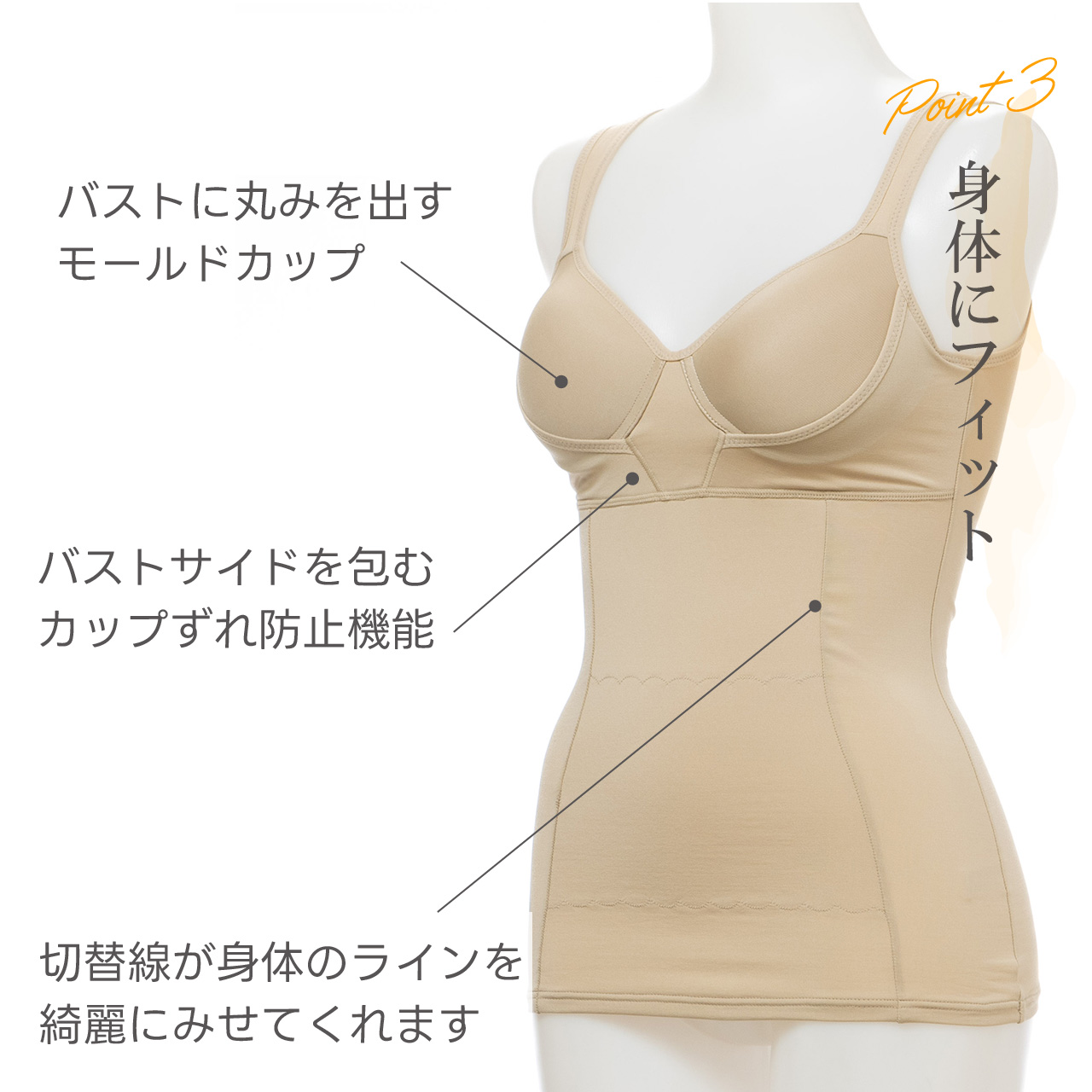 ナチュラル美胸 裏起毛 シェイパー ブライトマッチ カップ付き タンクトップ あたたかい 体形補正 補正下着 カップずれ防止 お腹おさえ エレーヌ elene 爆買