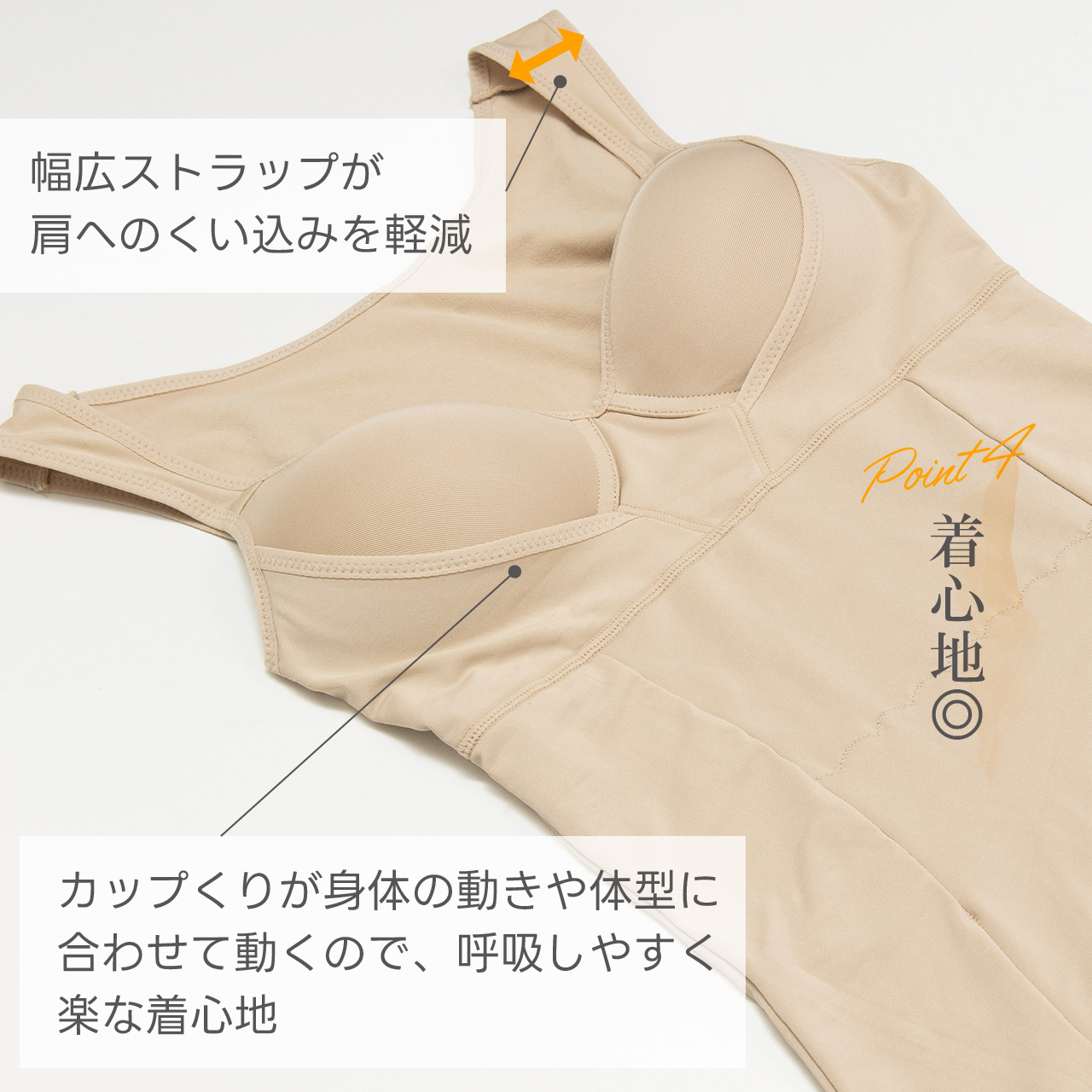 カップくりが体型や身体の動きに合わせて動くので、カップずれを防止。呼吸もしやすく楽な着心地です。
