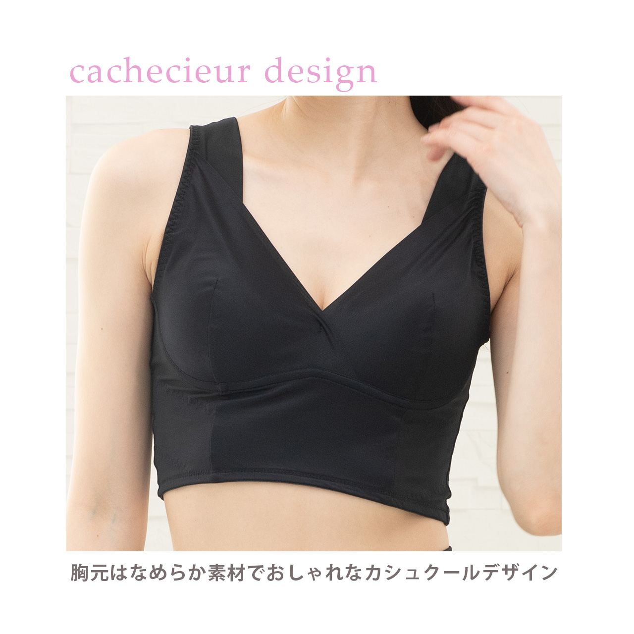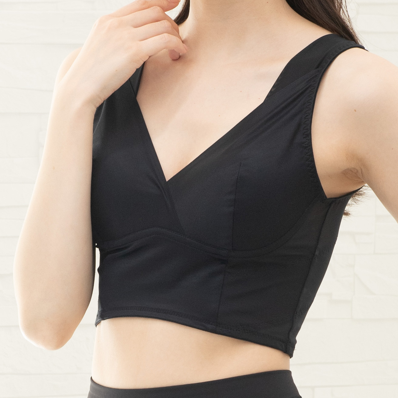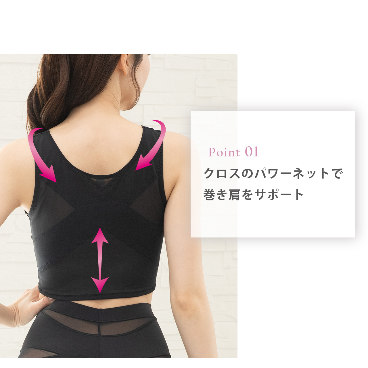 前側から付いている透け感のあるパワーネットクロスバックが巻いている肩をグイっと正しい位置にサポートします。