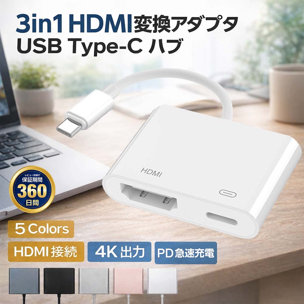 | 【3in1 USB-C変換アダプター】 | ・HDMI出力/USB Type-C給電を1台に集約。 ・これ1つで「映像出力・充電」が同時に可能です。 ・ノートPC・スマートフォンの拡張に最適なマルチアダプターです。 |