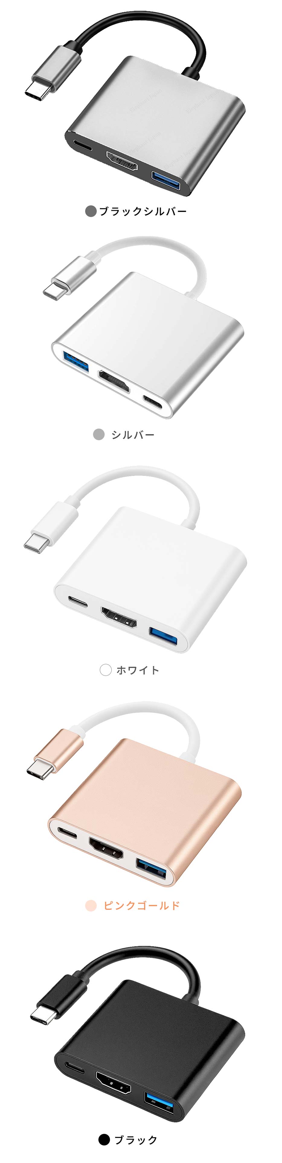 | 【3in1 USB-C変換アダプター】 | ・HDMI出力/USB-Aポート/USB Type-C給電を1台に集約。 ・これ1つで「映像出力・周辺機器接続・充電」が同時に可能です。 ・ノートPC・スマートフォンの拡張に最適なマルチアダプターです。 |