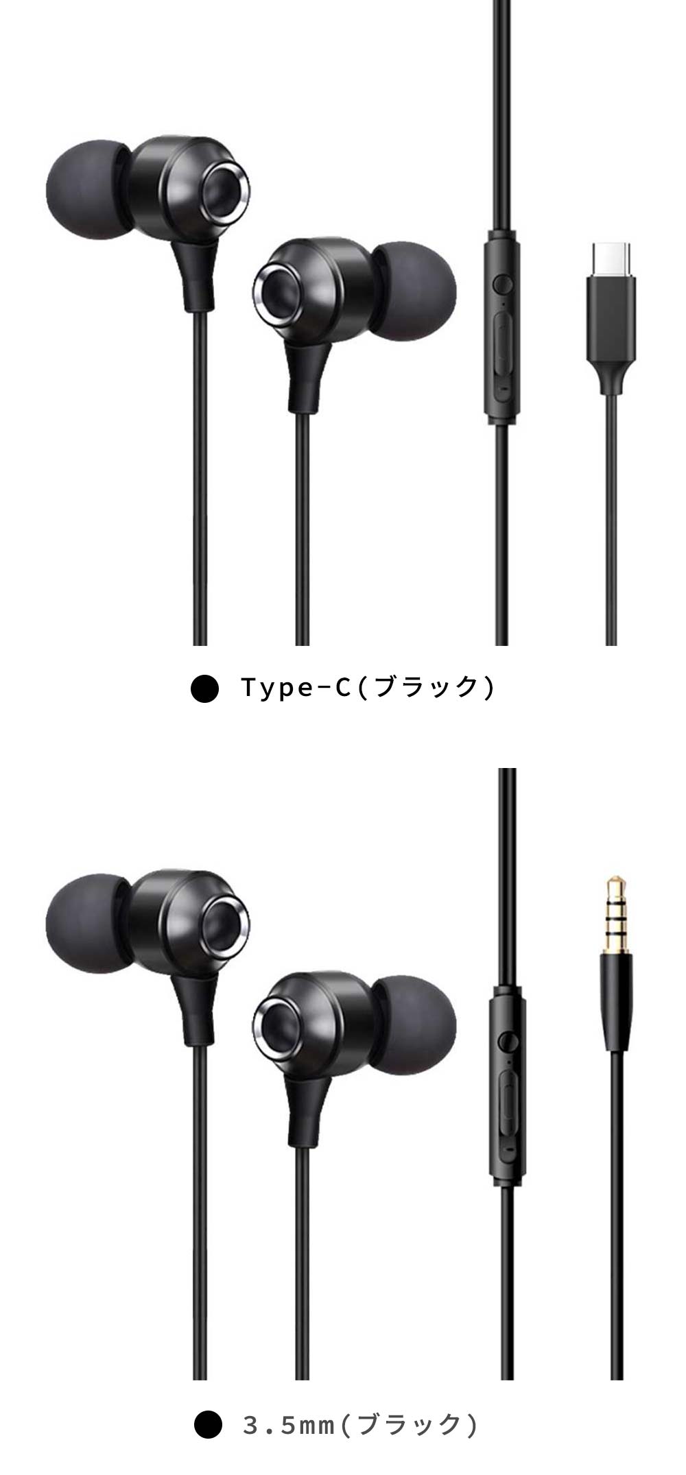 | 【商品仕様】 | 構造:カナル型 周波数帯域:20Hz〜20KHz スピーカー:10mm 感度:98±3dB インピーダンス:32Ω±15% 入力端子:Type-C / 3.5mmプラグ ケーブル長:約1.2m マイク:内蔵マイク搭載 |