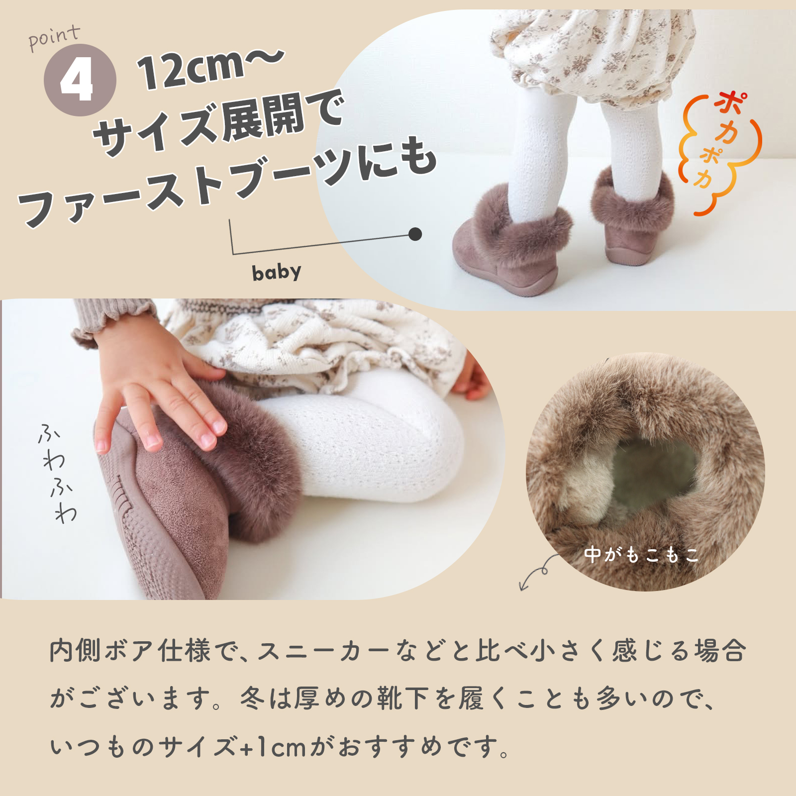 あったか ぬくぬく 寒さ対策 フェイクファー もこもこ ベビー キッズ 子供靴 ムートン風
