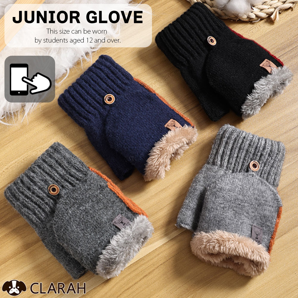 ジュニア 手袋 グローブ キッズ 高学年 中学生 高校生 子ども こども 指なし手袋 防寒対策 暖かい ネコポス送料無料