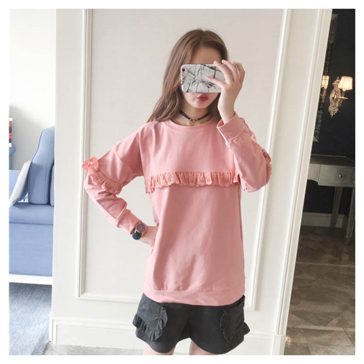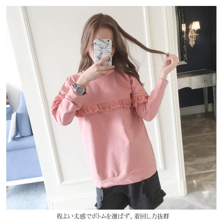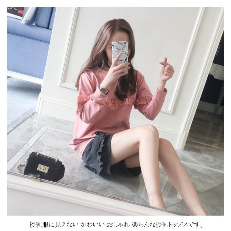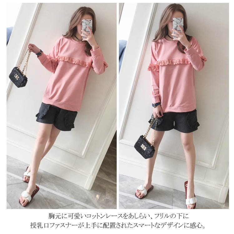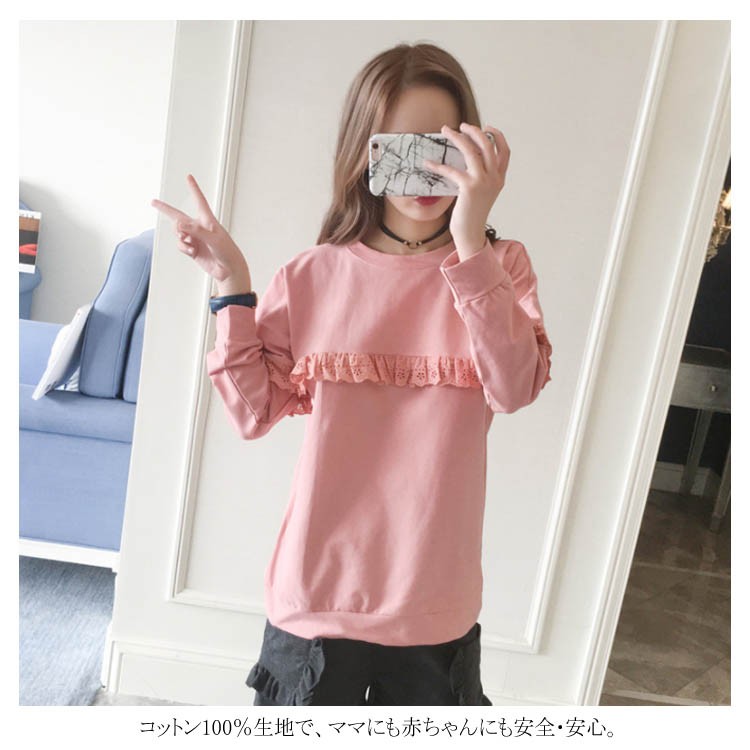 授乳服 パーカー トレーナー 授乳口 長袖カットソー マタニティウェア トップス ゆったり プルオーバー マタニティ 妊娠服 授乳 レース キレイめ