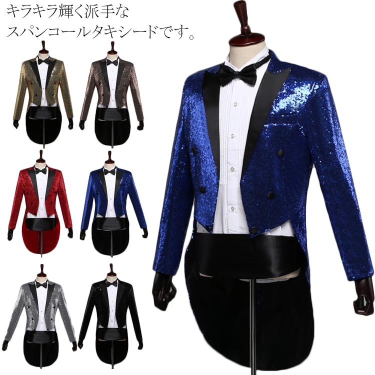 キラキラタキシード メンズ 燕尾服 スーツ ジャケット スパンコール タキシード スーツ 演出服 結婚式 礼服 コンサート 宴会 パーティー 芸人 お