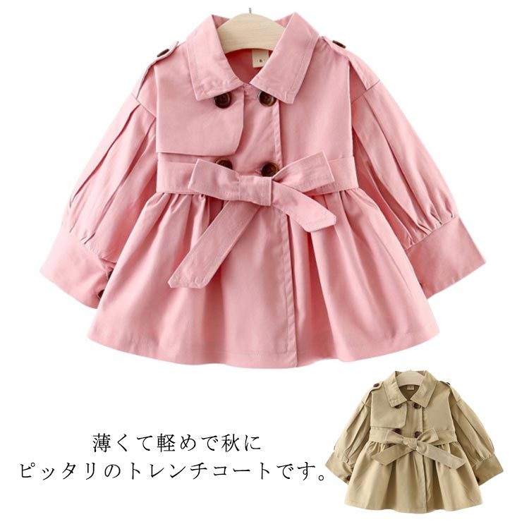 | 薄くて軽めで秋にピッタリのトレンチコートです。 シンプルだけどとても可愛くて気に入っています。 この季節にピッタリのキッズアウター☆ おしゃれながら防寒対策バッチリ♪ 寒気から大切なお子様を守る◎ | |
