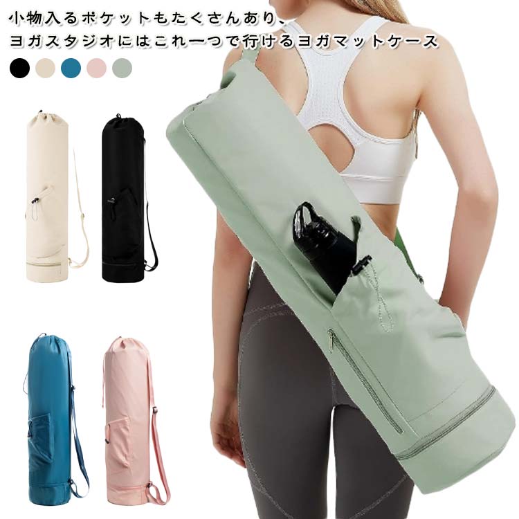 | 小物入るポケットもたくさんあり、ヨガスタジオにはこれ一つで行けるヨガマットケース メインポケットの他、財布やスマホなど貴重品を収納できるファスナーポケット、傘やペットボトルを収納可能のオープンポケット、濡れた衣類やタオルを収納できる底防水ポケットあり、ピラティス教室に通う際とても便利なヨガマットバッグ。 縦長の巾着バッグタイプなので、トップの絞りを開けたまま、ストレッチポールも入ります♪(ポール太さにより収納できない場合もあります。) ショルダーバッグ型で、両手がフリーで持ち運びやすいです。 表地は撥水加工で汚れがつきにくく、お手入れ簡単。 | |