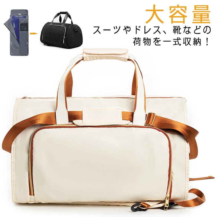 | スーツやドレス、靴などの荷物を一式収納! 遠出の際に必要なものをまとめて持ち運べるボストンバッグ。 バッグを広げて簡易的なクローゼントに変身可能! ボストンバッグ型なので、スーツやドレスだけではなく、バッグの中には、普段着やポーチや小物、靴などがたっぷり収納出来ます。 冠婚葬祭、出張、旅行、スポーツジム、ゴルフなど、ビジネスシーンやプライベートまで幅広くお使いいただけるデザインを考えました! | |