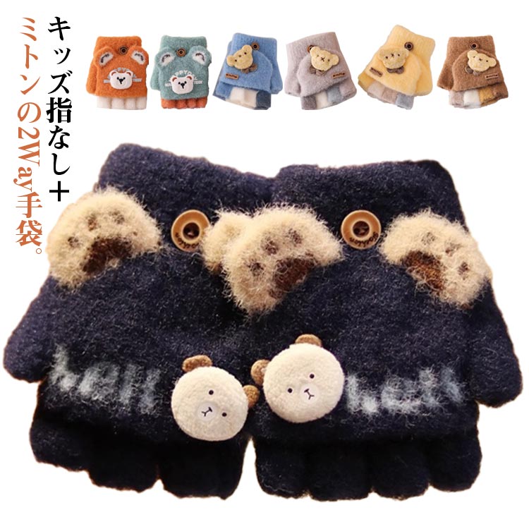 | キッズ指なし+ミトンの2Way手袋。 ミトンカバーで指まで隠せるので、かわいいのはもちろん、防寒対策にもなる手袋です。 ふわふわで暖かいのでベビーの防寒対策にピッタリ | |