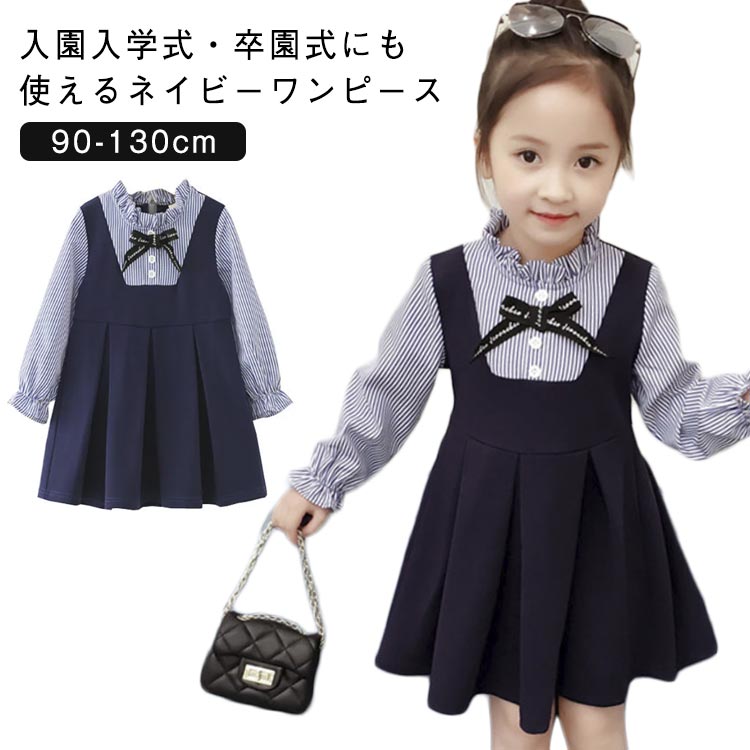 | 入園入学式・卒園式にも使えるネイビーワンピース 重ね着風ワンピースで楽々オシャレ,後ろファスナー仕様 しっかり縫製 品質がいいし、柔らかくて、肌触りが気持ち良い、保温性があります。 心地の良い素材、着替えが楽しくなるような可愛いデザイン。 お出かけ着から誕生日、発表会、入園式や卒園式まで幅広く着ていただけます | |