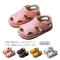 | 子供の歩行をしっかりサポートレザー風合いキッズサンダル 足指を広げて踏ん張れるよう、つま先部分に余裕があるデザインのものがおすすめです。 柔らかいインソールは疲れにくくお子様の歩行をしっかりサポート。 たっぷりの穴を開いて乾きやすいビーチ、水遊びなどアウトドア活動に最適なアイテムです。 カジュアルスタイルはもちろん、ソックスとの併用や、かわいい雰囲気のワンピースとも合い、幅広いコーディネートが楽しめます♪ | |