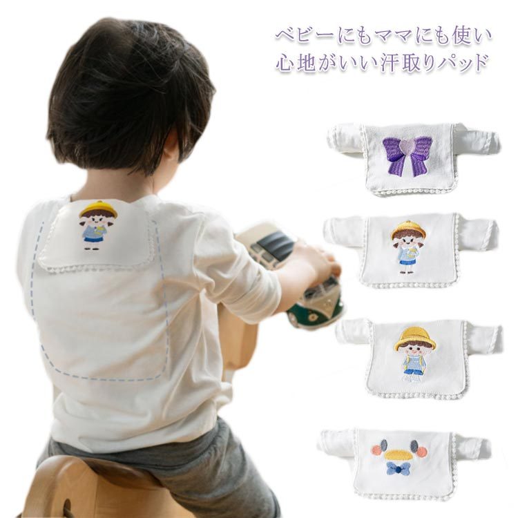| ベビーにもママにも使い心地がいい汗取りパッド ガーゼ4層合わせてにすることで汗をしっかり吸収することができます。 高品質の綿素材を採用しており、肌触りも柔らかです。 汗取りパッドを取り換えるだけで、どこでも簡単にお着替えができます。 可愛い刺〓デザインはどこから見ても可愛い! 汗をかきやすい季節にも爽やかな着心地を保ちます! | |
