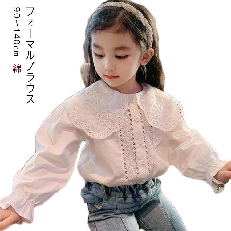 | 可愛い襟レース長袖ブラウス。 綿素材でお肌のデリケートなお子様にも安心。 秋口から春先まで着られる素材感。 入学式や卒業式、発表会や結婚式など冠婚葬祭、様々なフォーマルシーンに対応。 | |