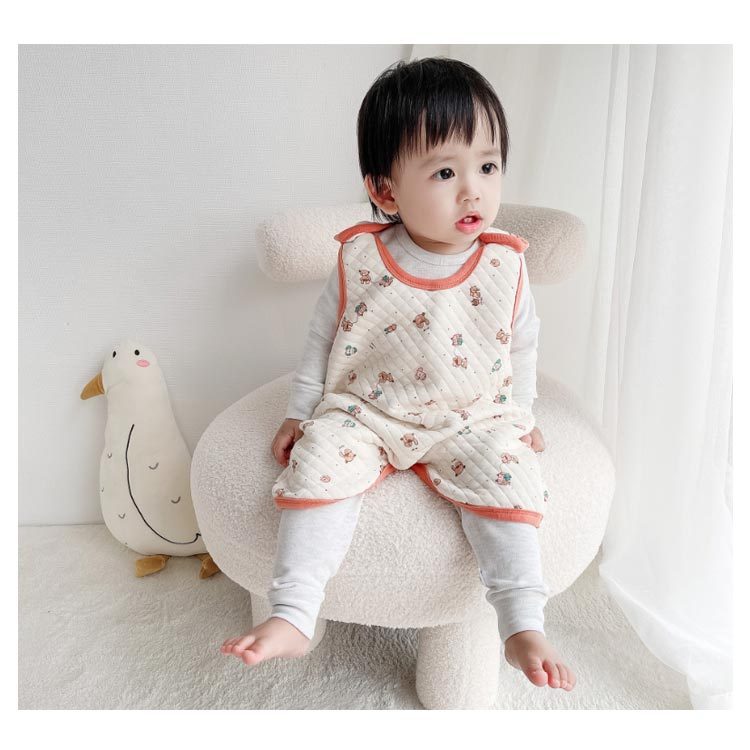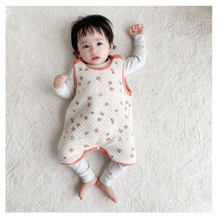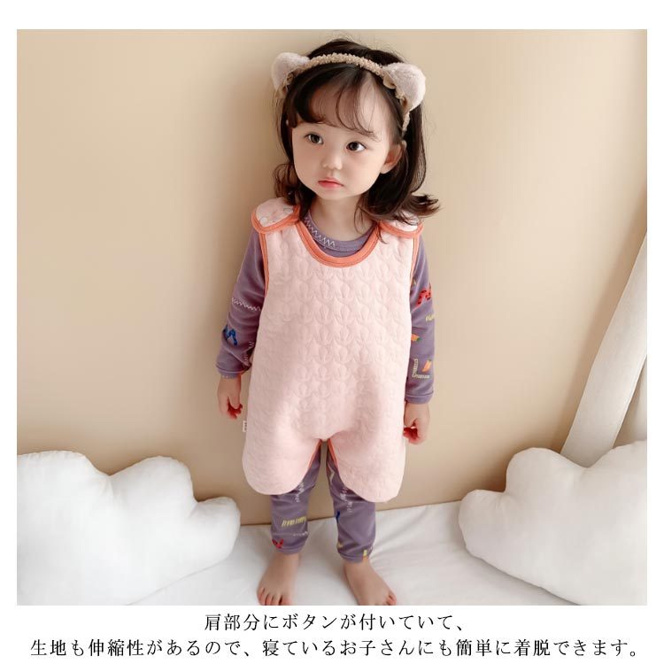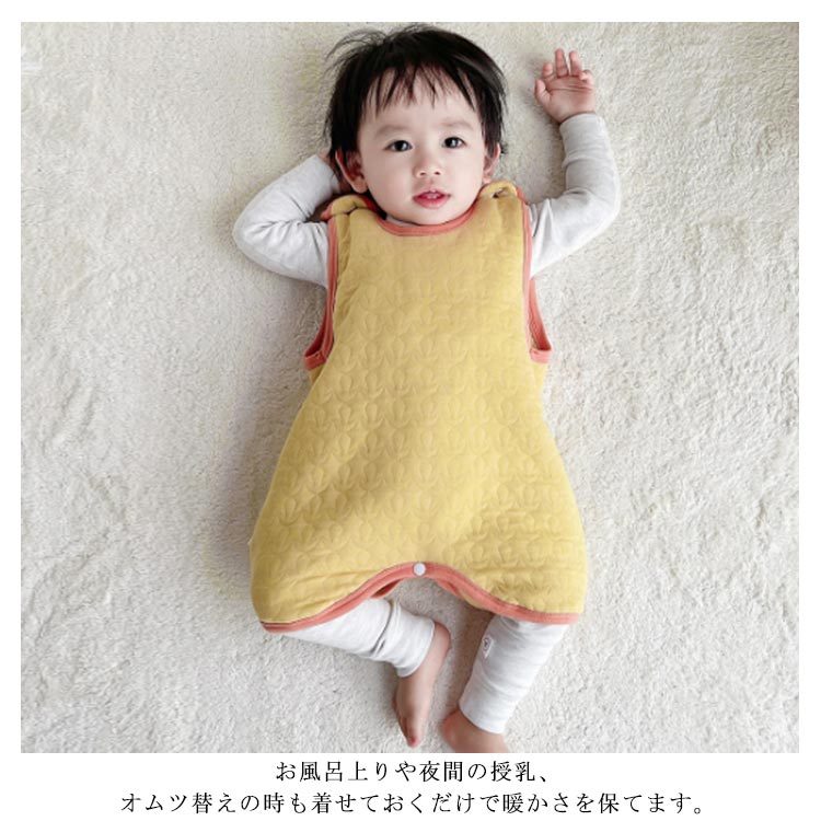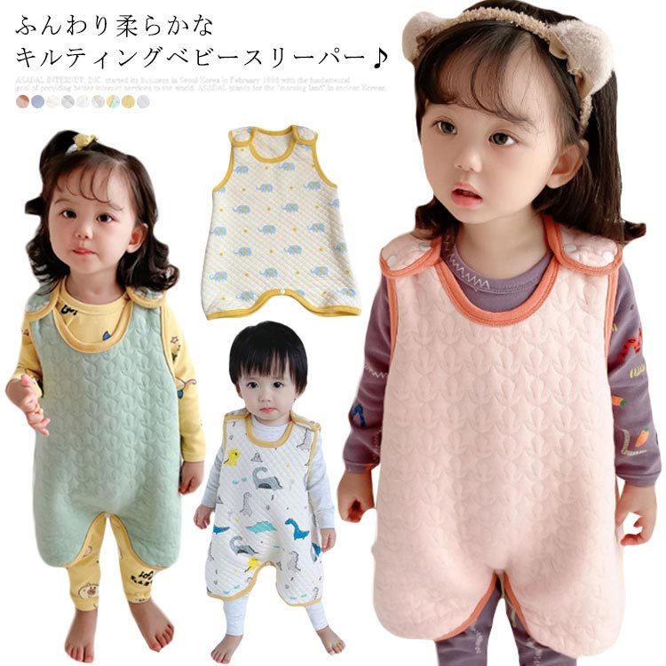 | ふんわり柔らかなキルティングベビースリーパー♪ 股下ボタンで、動きやすく、めくれにくい、寝返りだって大丈夫。 肩部分にボタンが付いていて、生地も伸縮性があるので、寝ているお子さんにも簡単に着脱できます。 お風呂上りや夜間の授乳、オムツ替えの時も着せておくだけで暖かさを保てます。 | |
