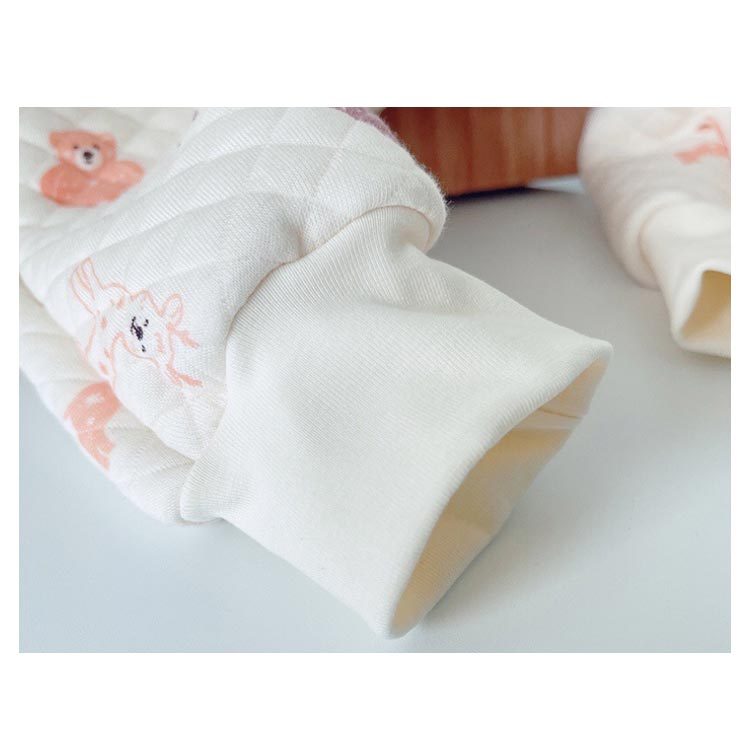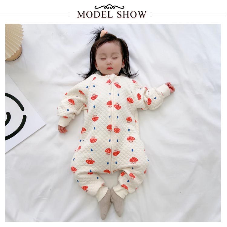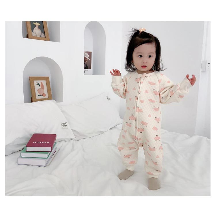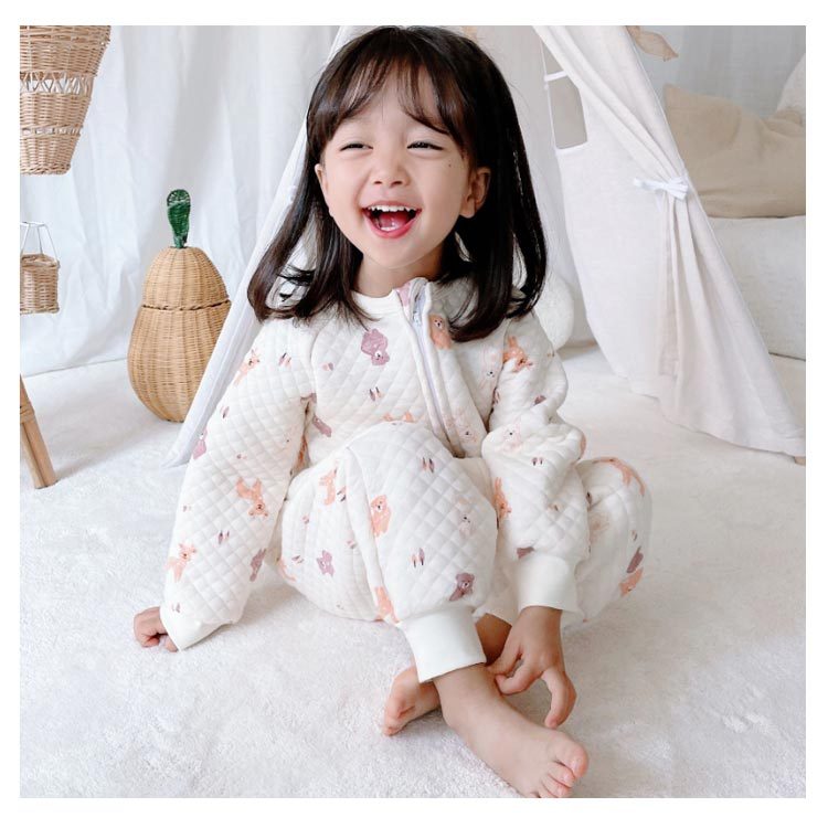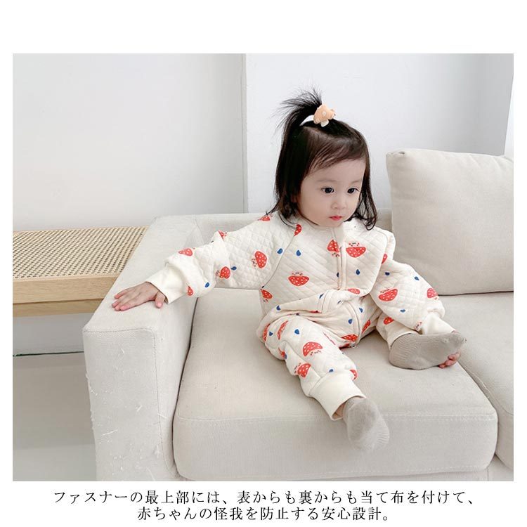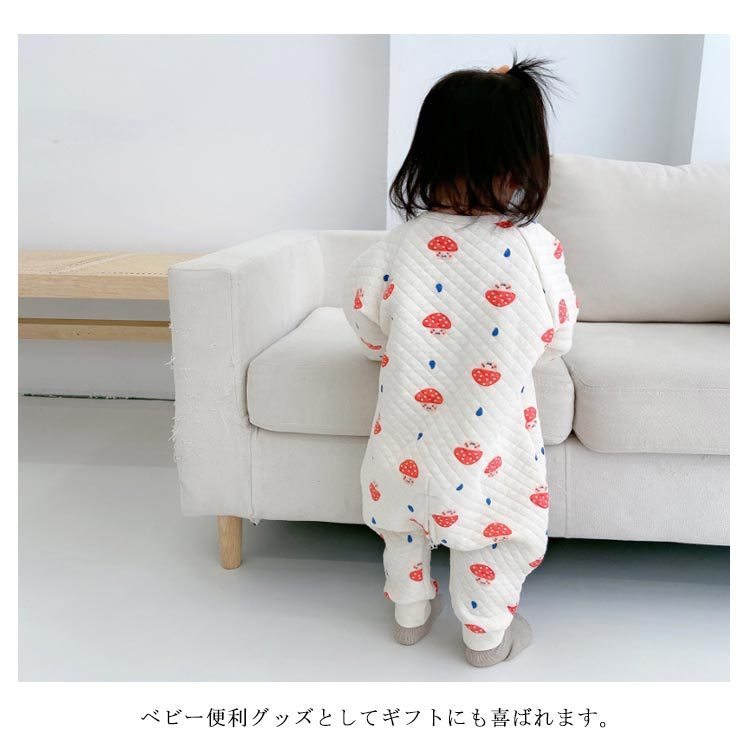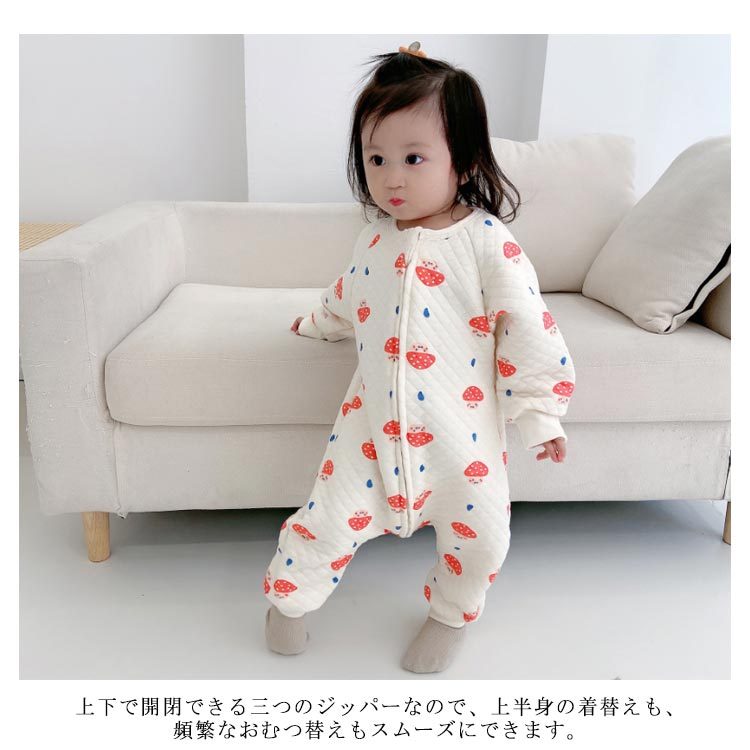| 寝冷え防止にピッタリのスリーパー。 ・表地は吸湿性・発散性に優れた綿100%生地です。 ・ファスナーの最上部には、表からも裏からも当て布を付けて、赤ちゃんの怪我を防止する安心設計。 ・上下で開閉できる三つのジッパーなので、上半身の着替えも、頻繁なおむつ替えもスムーズにできます。 ・ベビー便利グッズとしてギフトにも喜ばれます。 | |