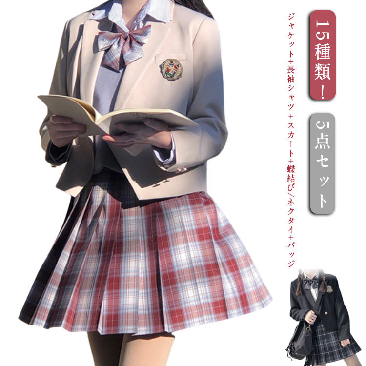 | 5点セット内容:ジャケット 長袖シャツ+スカート 蝶結び/ネクタイ バッジ ポリエステル 綿。しっかりした生地を使用して、通年着用できるJKスクール制服。 定番な女子高生制服。清純的で本格制服で、日常着や学校制服としてはもちろん、ハロウィンの仮装や、コスプレの衣装にもおすすめ。 リボンとチェックスカートがとってもキュート。お子様の好みに合わせてお選びください。 普段着、通学、披露宴、お出かけはもちろん、入学式、お誕生日、パーティー、結婚式、セレモニー、入学式、七五三、卒業式、演奏会、お受験、発表会など長いシーズン、様々なシーンでご活用いただける1着です。 | |