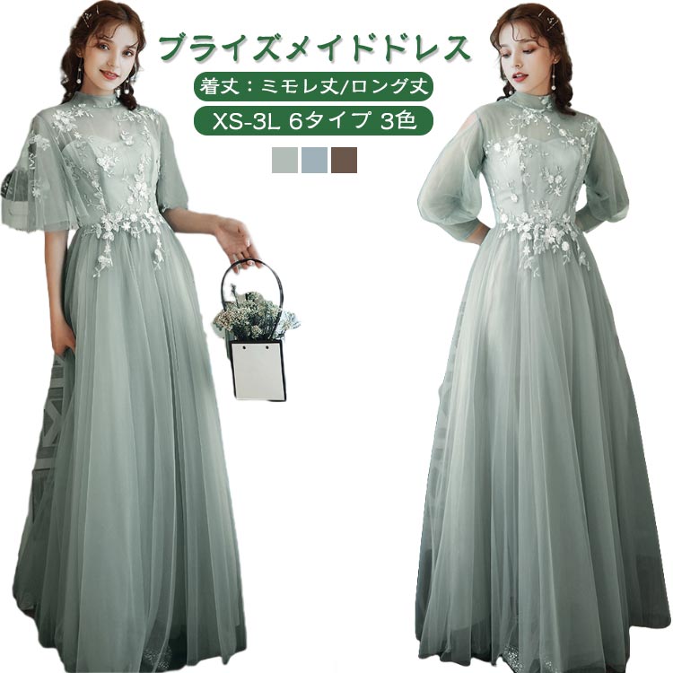 XS-3L 6タイプ 3色 着丈:ミモレ丈/ロング丈 ブライズメイドドレス