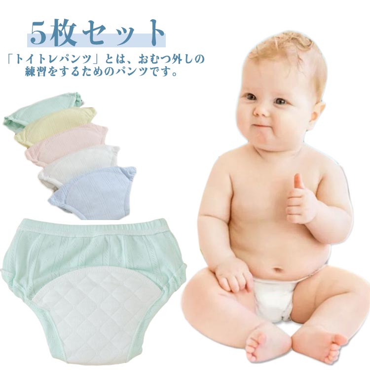 | 「トイトレパンツ」とは、おむつ外しの練習をするためのパンツです。 内側に吸水布が付いており、おしっこを吸収します。おしっこの不快感が肌に伝わり、おしっこの感覚をつかむことが出来ます。 綿素材なので、肌触り柔らかで履き心地もとても良いです。 オムツに比べて軽くて吸水性や通気性が抜群なので、おしっこ以外にも汗をかきやすいお子さんのお肌には最適です。 しっかりとした丈夫な素材なので耐久性が高く、お洗濯にも強く繰り返し使用が可能で経済的です。 日中はトレーニングパンツとして、就寝時はおねしょパンツとして使用が可能です。 ウエスト、もも回りは伸縮性のあるゴムでお肌に優しく、お尻にぴったりフィットして漏れを防ぎます。 ストレッチの効いた柔らかいゴムなので、トイトレ時期のお子さま自身でパンツを履く練習にもなります♪ 5枚セットなので、トイトレで汚しがちなお子様でも気軽に洗いに出せてとても便利。保育園などに持ち込む際も重宝します。 | |