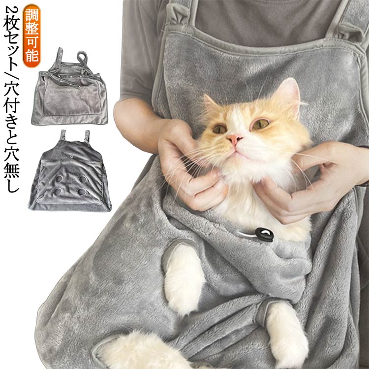 | 2枚セット/穴付きと穴無し 足が出せる穴開きタイプで猫の爪切りや耳の洗浄、歯磨きなどのケアを安全に行えます。 エプロン式なので、着脱が簡単です。 柔らかくさらりとした肌触りで夏にぴったりです。 ポケットのサイズはドロストで調整出来るので移動中のペットの飛び出しを防ぎ、ペットの安全を確保します。 汚れたら洗濯機で丸洗い可能です。 | |