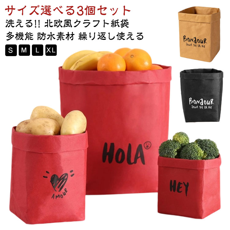 | 多機能 防水素材 繰り返し使える 洗える!! 北欧風クラフト紙袋 S/M/L/XL 【サイズ選べる3個セット】 北欧風繰り返し使えるクラフト紙の収納バッグです! 1.素材:高品質な革で作られたクラフト紙袋*防水/耐摩耗/環境に優しい 2.多機能収納:野菜、フルーツ、お菓子の収納に最適で、おもちゃや文房具、ごみ箱などさまざまなインテリア収納にもお使い頂けます。もちろん、植木鉢として綺麗に使用できるので、是非試してみてください! 3.DIYの楽しみ:自分好きな形に折りたためます。品物のサイズにも合わせて高さを調整でき、便利で使いやすいです。 4.お手入れ:この商品は再利用可能な収納袋です。水で洗って繰り返す使え、ウェットでサッと汚れをふき取ることもでき、いつでも綺麗な状態を保てます。 | |