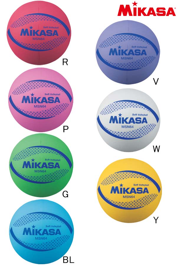 ブランド:MIKASA【ミカサ】品番:MSN64品名:小学生用ソフトバレーボール1・2・3・4年生用素材:特殊合成ゴムサイズ:円周約64cm重量:約150gカラー:R(レッド)/V(バイオレット)/P(ピンク)/W(ホワイト)/G(グリーン)/Y(イエロー)/BL(ブルー)品名:小学生用ソフトバレーボール5・6年生用素材:特殊配合ゴムサイズ:円周約64cm重量:約180gカラー:H(5・6年生用 イエロー)この商品は、空気が入ってない状態での発送となります。ボール専用ポンプで空気を入れてご使用ください。ボール本体に記載の規定の円周以上に空気を入れないでください。より長くご使用いただく為に、ご使用後は軽く空気を抜いて、風通しの良い所に保管することをお薦めいたします。