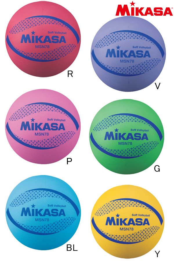 ブランド:MIKASA【ミカサ】品番:MSN78品名:ソフトバレーボール 公式試合球素材:特殊合成ゴムサイズ:円周約78cm重量:約210gカラー:R(レッド)/V(バイオレット)/P(ピンク)/G(グリーン)/BL(ブルー)/Y(イエロー)この商品は、空気が入ってない状態での発送となります。ボール専用ポンプで空気を入れてご使用ください。ボール本体に記載の規定の円周以上に空気を入れないでください。より長くご使用いただく為に、ご使用後は軽く空気を抜いて、風通しの良い所に保管することをお薦めいたします。