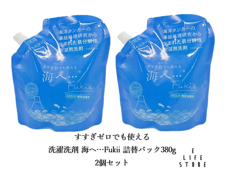 【2個セット】洗濯洗剤 海へ…Fukii 詰替パック380g すすぎゼロでも使える 節約 節電 時短 多忙 柔軟剤不要 肌にやさしい 静電気防止効果も ポスト投函