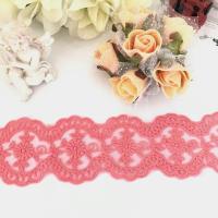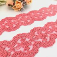 スイカピンクカラーの花模様の刺繍チュールレースに