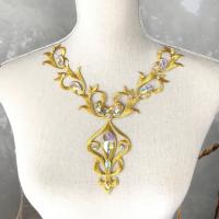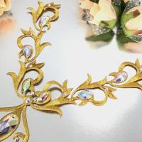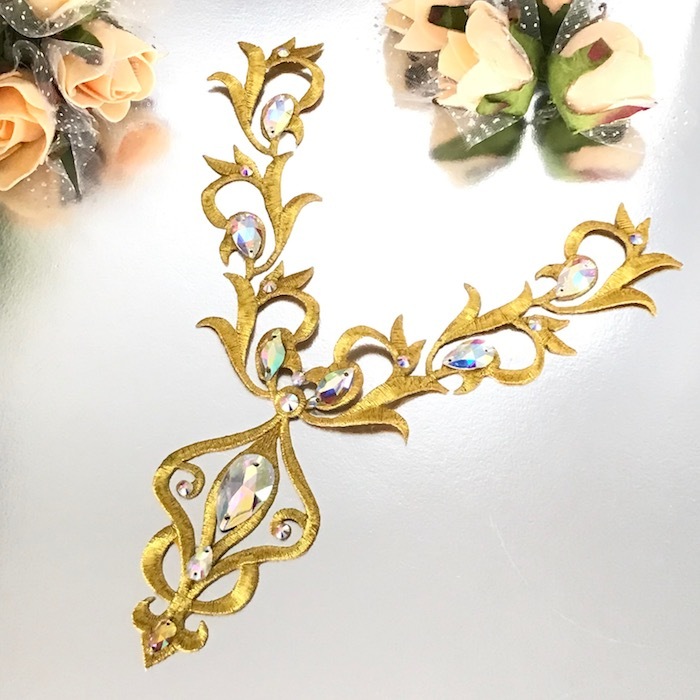 ゴールド レオタード バトン モチーフ アイロン用 ネックラインモチーフ ラインストーン ワッペン 貼り付け アップリケ 衣装 レオタードモチーフ バレエ衣装