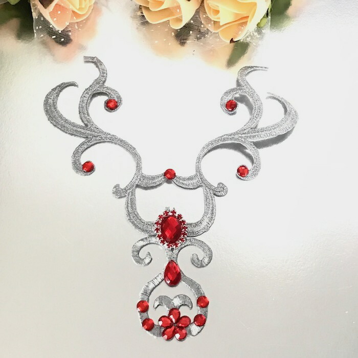 シルバー ネックライン モチーフ 衣装 レオタードモチーフ アイロンワッペン アイロン接着 アップリケワッペン モチーフ 装飾 バトンモチーフ バレエ衣装