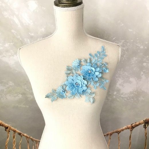 モチーフレース 立体フラワー 花 レースアップリケ ストーン付き ブルー パーツ モチーフレース 3D 衣装 材料 コスチューム バトン ダンス 新体操 ビーズ