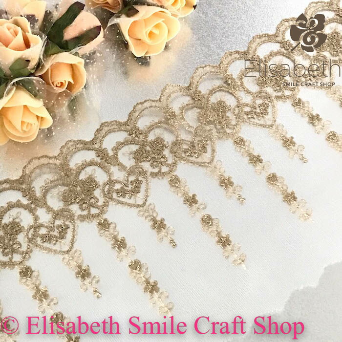 レース チュールレース 手芸 花柄 花模様 チュチュレース 衣装 刺繍レース リボン 手作り 素材 装飾 材料 コスプレ衣装 バレエ衣装 舞台衣装 ステージ衣装 ダンス衣装 社交ダンス フィギア衣装 ゴールド