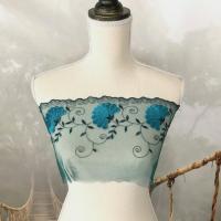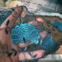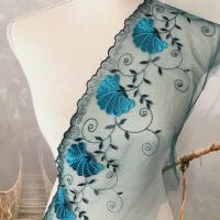 幅広 花柄のブルー刺繍入りチュールレースになります。