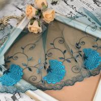 レース リボン 手芸 幅広 花柄 ブルー 刺繍リボン 手作り 飾り 素材 装飾 材料 衣装 チュールレース