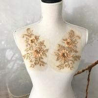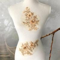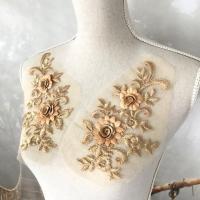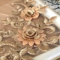 チュールモチーフ 花柄 チュールモチーフ 立体的 ゴールデンベージュ 3D 花 刺繍 ハンドメイド 衣装 装飾 レオタード バトンモチーフ ペア セット 手作り